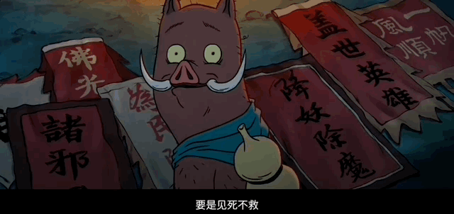 如果说短片中,写熊教头拒绝性能更好的箭,是对职场“面子大于里子”的批评;那么,此处小猪妖一番努力喜提死刑,在一丝命运无常的意想不到之下,依旧是对职场命令荒诞的嘲讽。